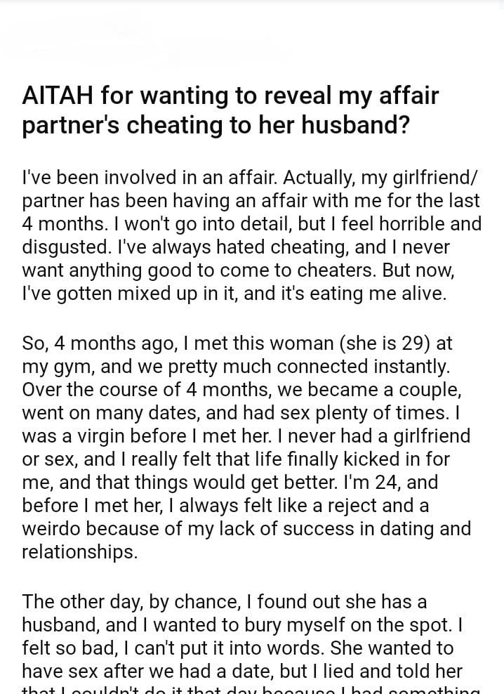 AITAH for wanting to reveal my affair partner’s