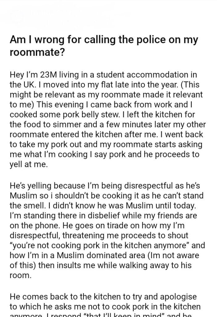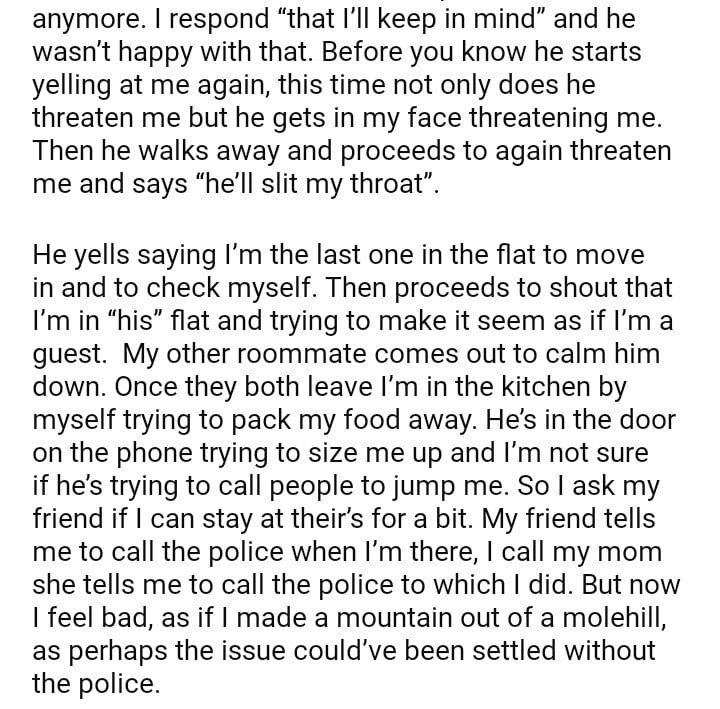 Am I wrong for calling the police on my roommate?