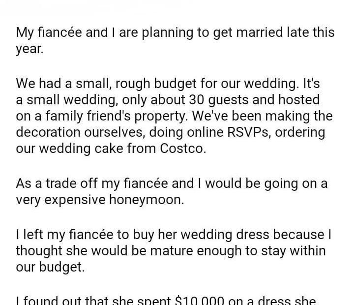 AITA for cancelling our honeymoon after my fiancee spent $10,000 on her wedding dress?July 11, 2024July 11, 2024AITA