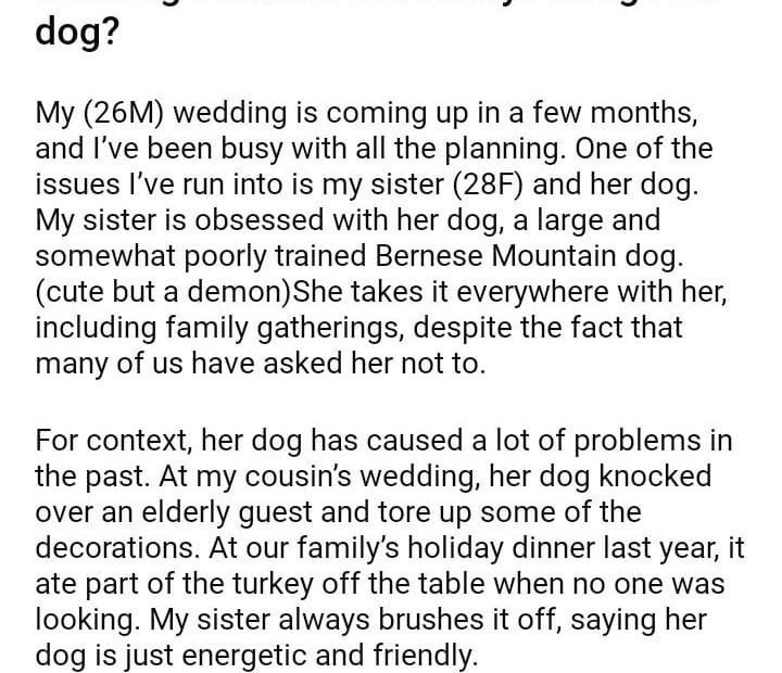 AITA for not inviting my sister to my wedding because she always brings her dog?June 27, 2024June 27, 2024AITA