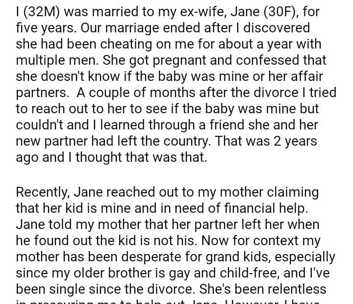 AITA for insisting on a test before accepting my ex-wife’s son as my own?May 17, 2024May 17, 2024AITA