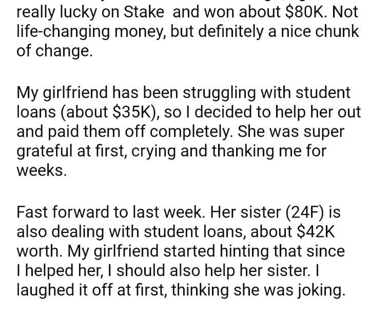 AITAH for my girlfriend sister’s student loans