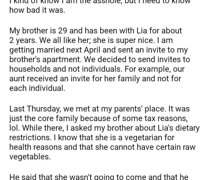 AITA for taking away my brother’s plus one and inviting his girlfriend myself?July 2, 2024July 2, 2024AITA