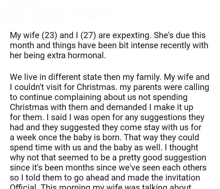 AITA for agreeing to have my family visit for a week after my wife gives birth?June 15, 2024June 15, 2024AITA