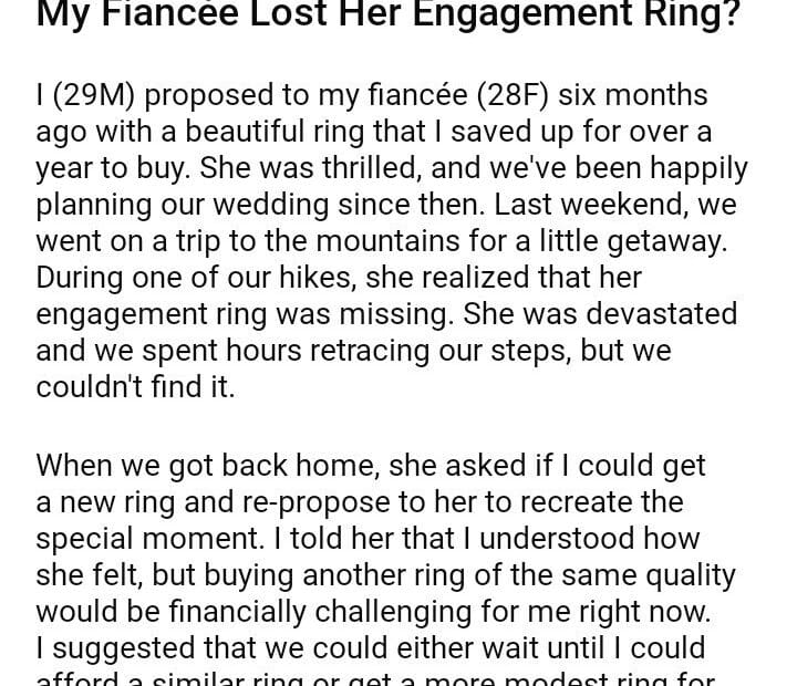 AITAH for Refusing to Re-Propose After My Fiancée Lost Her Engagement Ring?May 31, 2024May 31, 2024AITA