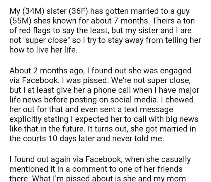 AITAH for my sister’s wedding ceremony
