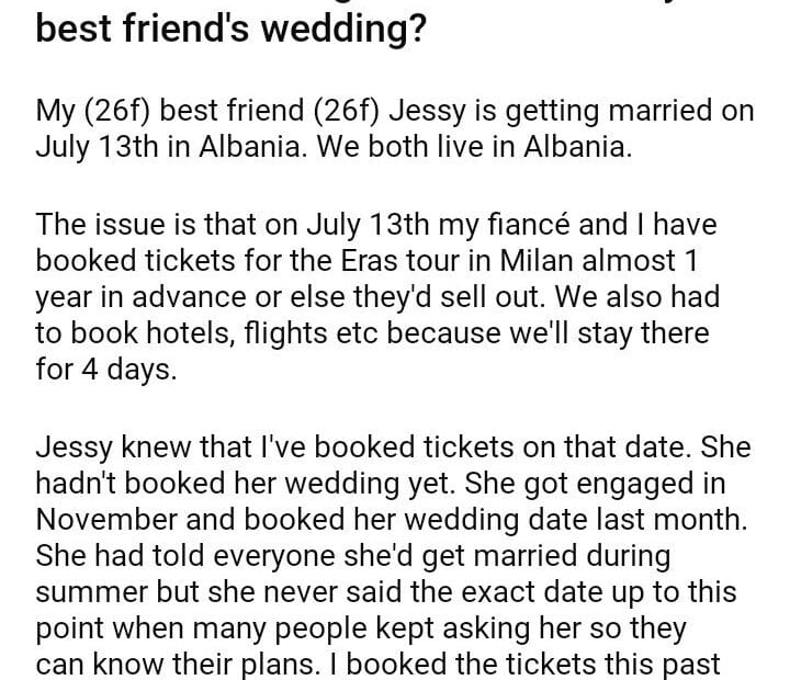 AITA for choosing a concert over my best friend’s wedding?
