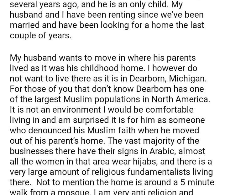 AITAH For Not Wanting To Live In A Muslim Neighborhood?