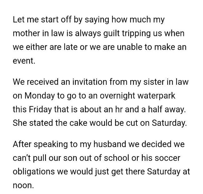 Sister in law uninvited us