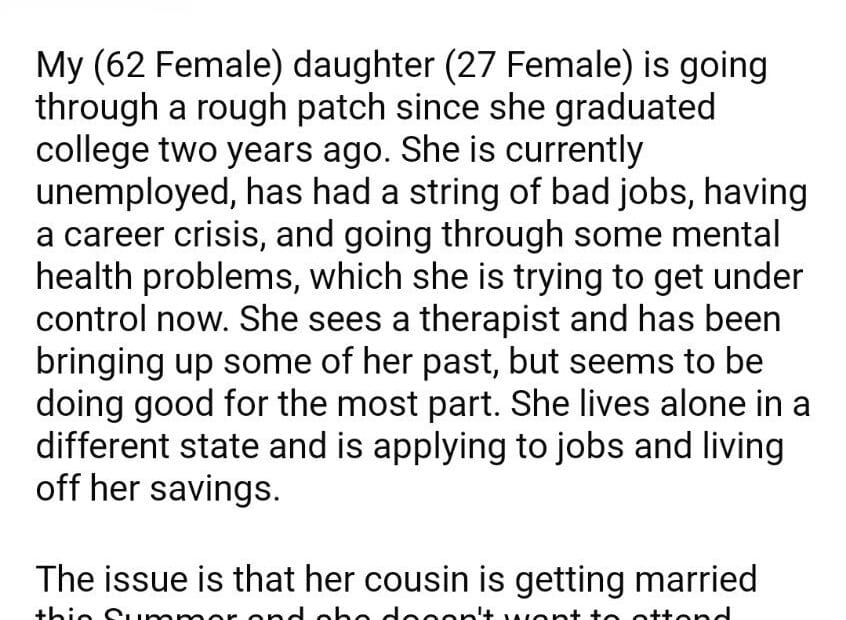 AITA for my daughter cousin’s wedding