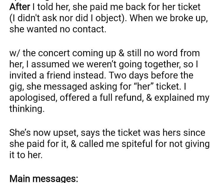 AITA for my ex concert ticket