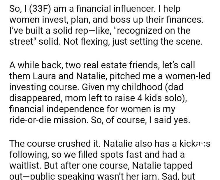 AITA for my ex-business partner’s course