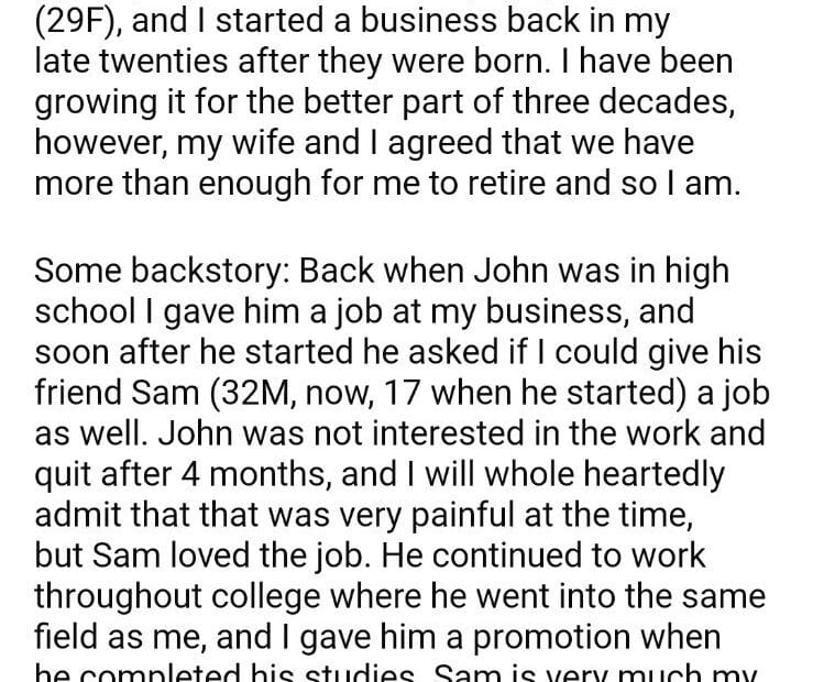AITA for leaving my business to my protégé