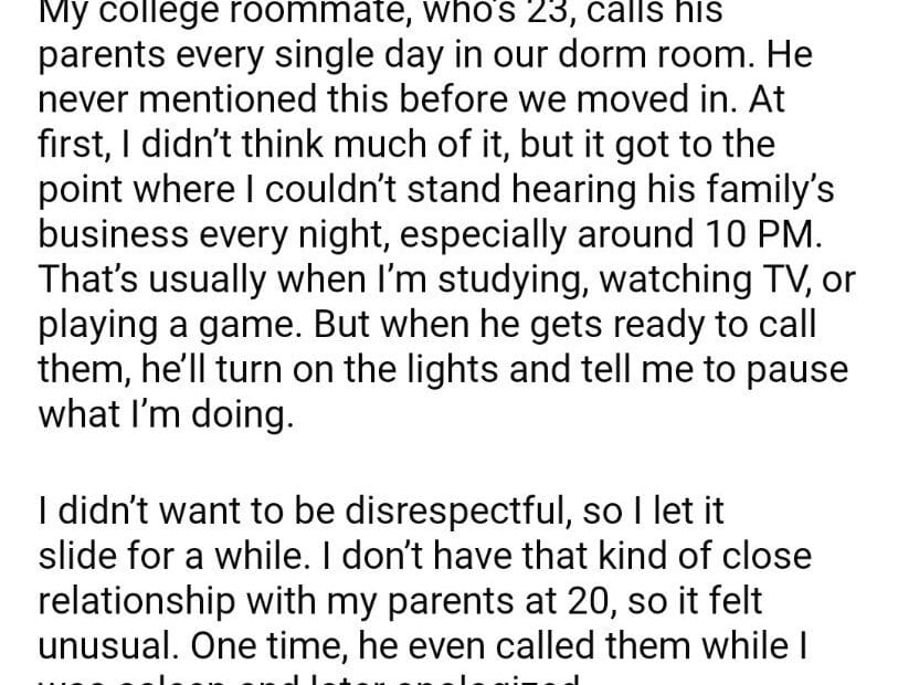 AITA for asking my roommate to call his parents