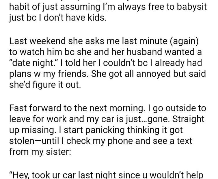 AITAH for what my sister did to my car?