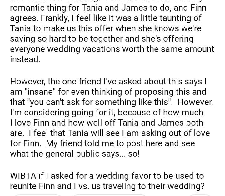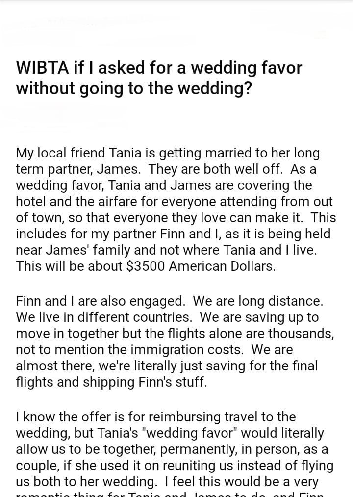WIBTA if I asked for a wedding favor without going to the wedding?