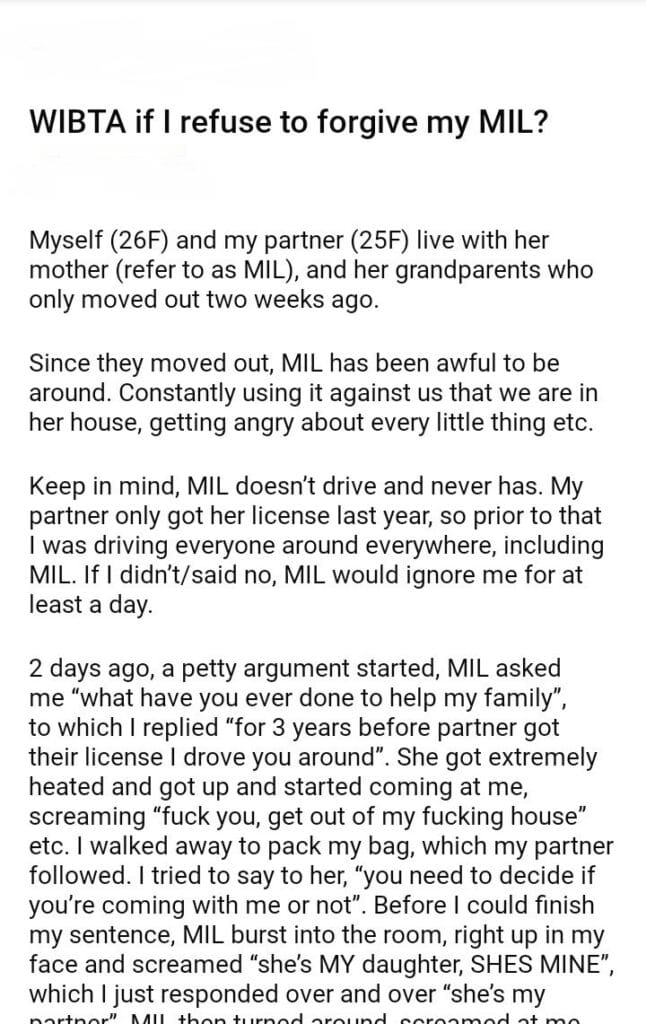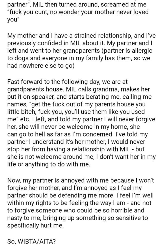 WIBTA if I refuse to forgive my MIL?