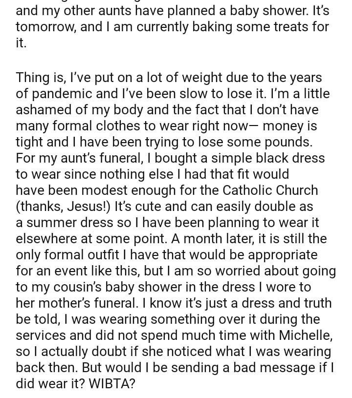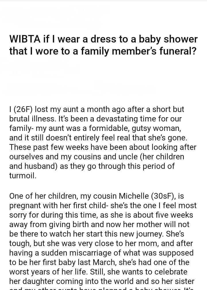 WIBTA if I wear a dress to a baby shower