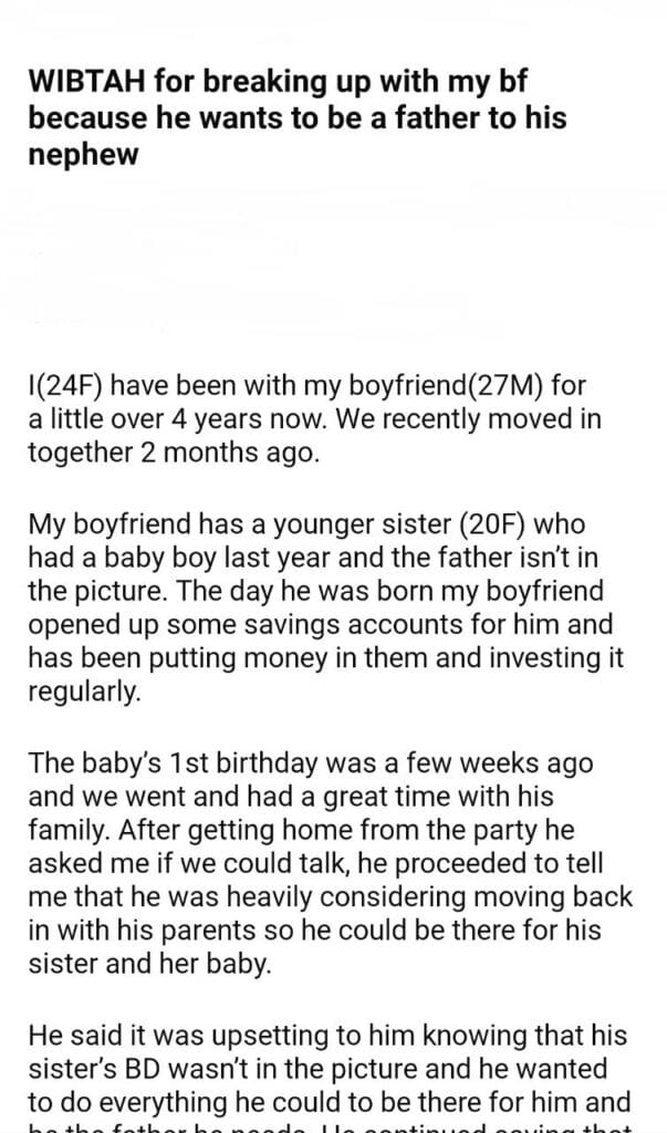 WIBTAH for my bf nephew
