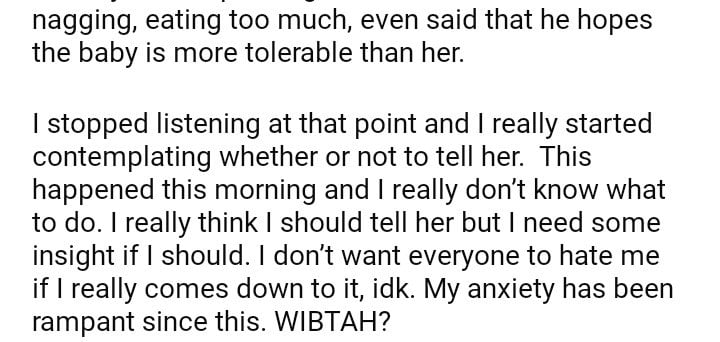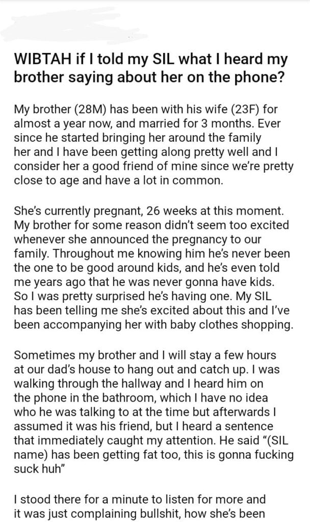 WIBTAH if I told my SIL what I heard my brother saying about her on the phone?